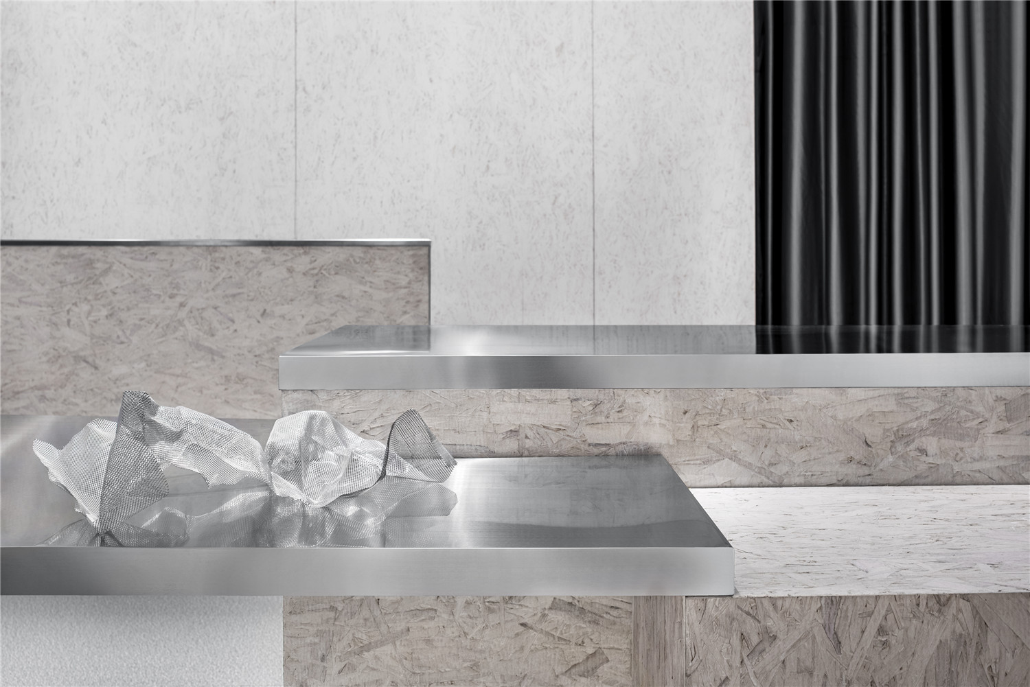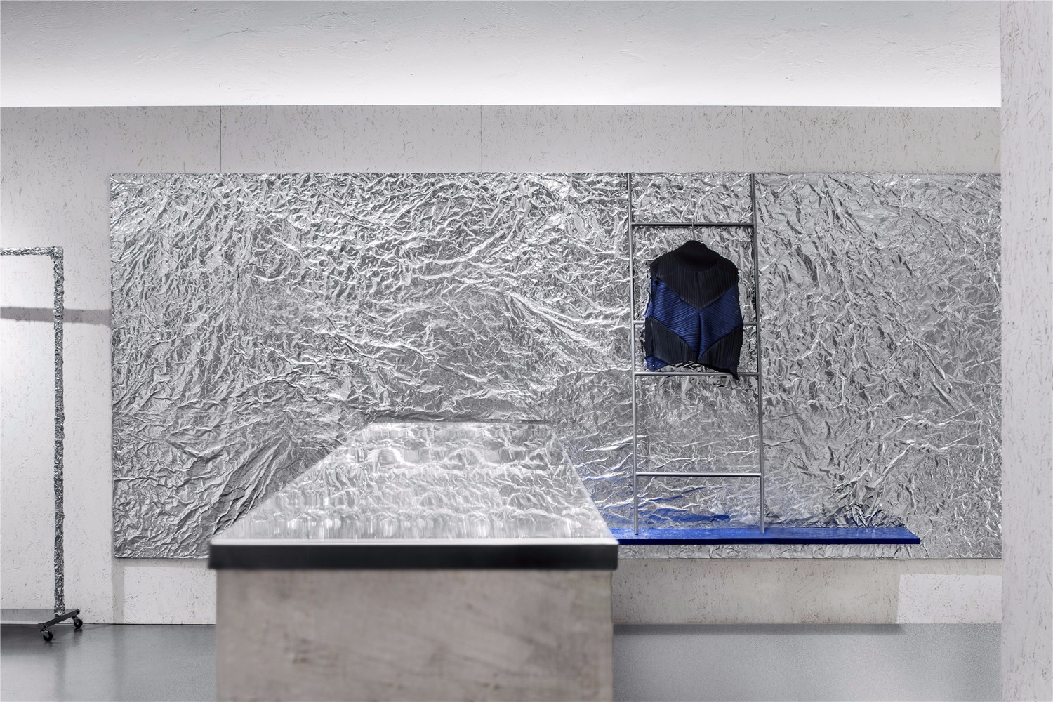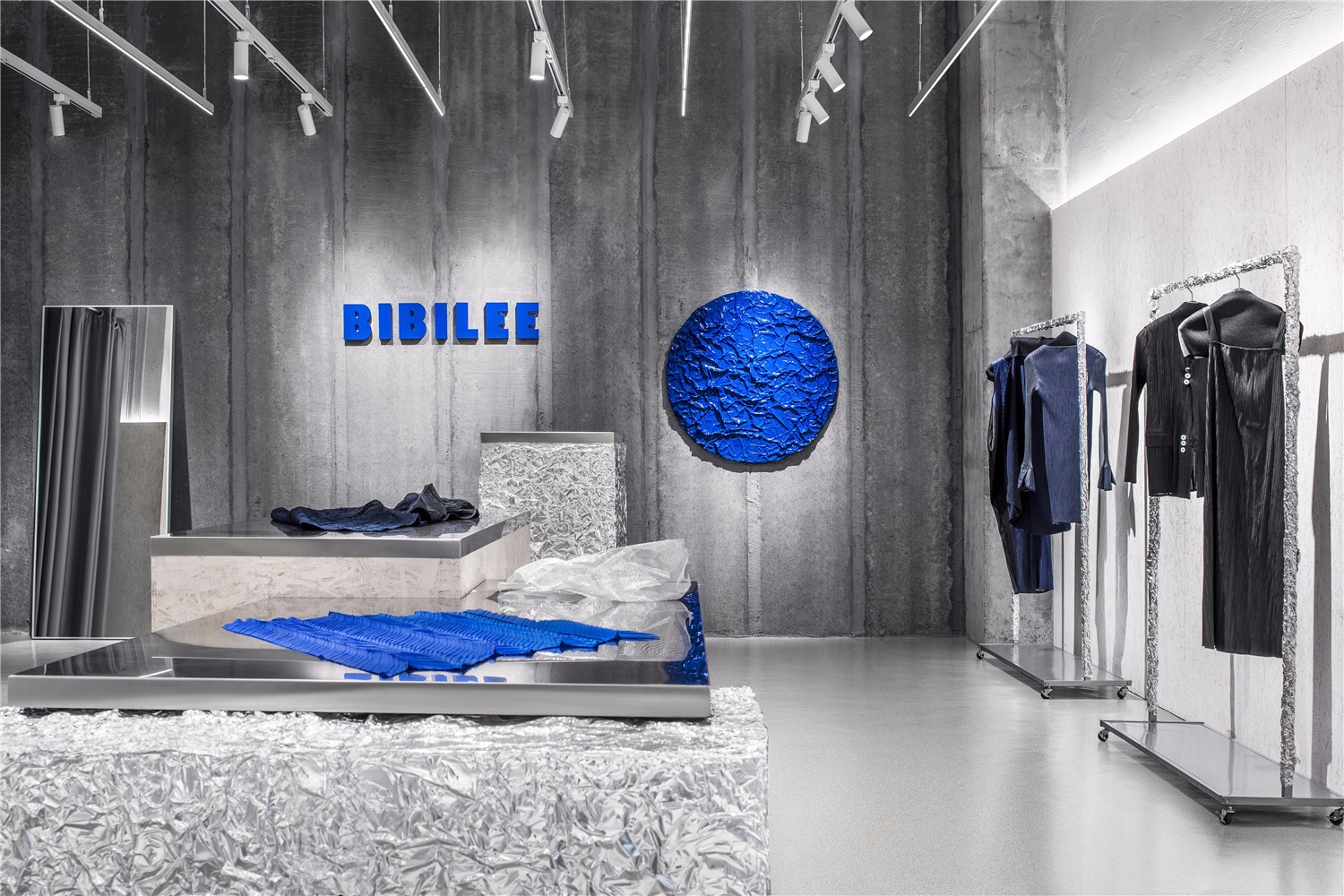品牌以压褶工艺为其核心展开,创作出风格鲜明的服装。在空间的设计上,MOC也以此为出发点,从材质选择到肌理形态,均契合褶皱的元素,塑造空间与品牌的高度一致。